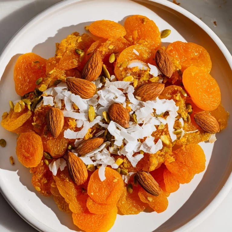 Save A vibrant, healthy snack featuring sweet dried apricots and crunchy almonds, perfect for a quick energy boost or elegant cheese board addition.