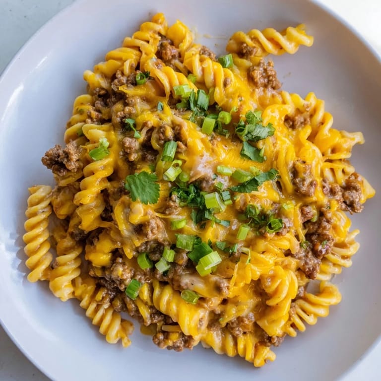 Save A one-pan, family-friendly dish blending the bold flavors of tacos with creamy, cheesy pasta for a quick and satisfying weeknight meal.