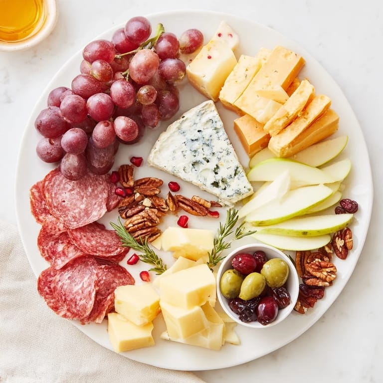 Feel free to swap out any cheeses or charcuterie based on your preferences or dietary needs. Vegetarians can omit the charcuterie and add more fruits, nuts, or marinated vegetables to maintain variety and richness on the board.