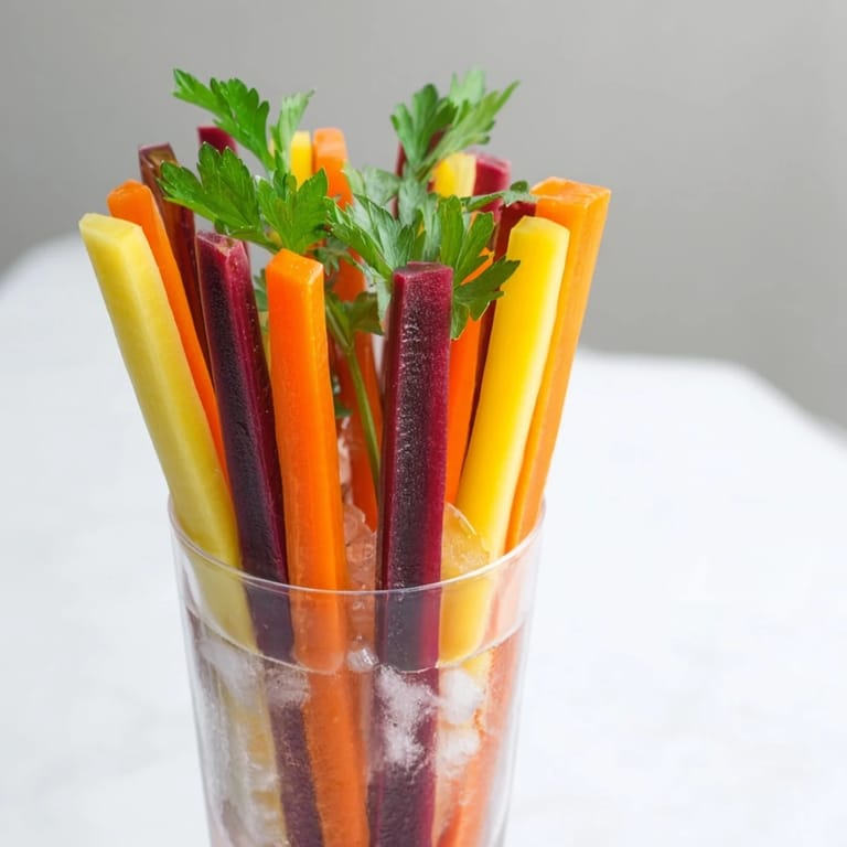 Save Simple Crudités: Rainbow Carrot Sticks in Tall Glasses offer a vibrant and healthy way to brighten your gatherings. This colorful appetizer features crisp carrot sticks in a variety of hues served chilled in tall glasses, making it an inviting choice for parties or a refreshing snack any time of day.