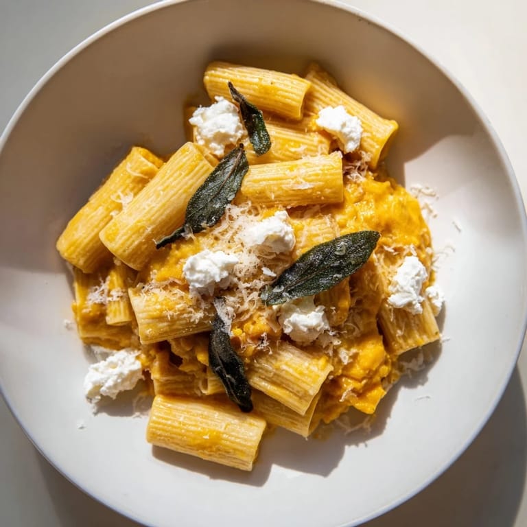 Save A creamy, comforting pasta dish featuring sweet roasted butternut squash, tangy goat cheese, and fragrant crispy sage. Perfect for cozy autumn dinners.