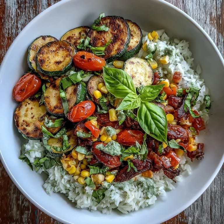 Save My neighbor knocked on the door one August evening holding a grocery bag overflowing with zucchini from her garden. She laughed and said she couldn't eat another one if she tried. I tossed them in a skillet with whatever bright vegetables I had on hand, and that night, this bowl was born. It's become my answer to summer abundance, the kind of meal that tastes like sunshine and doesn't require a recipe once you've made it once. Now every time zucchini season rolls around, I think of her and that overstuffed bag.