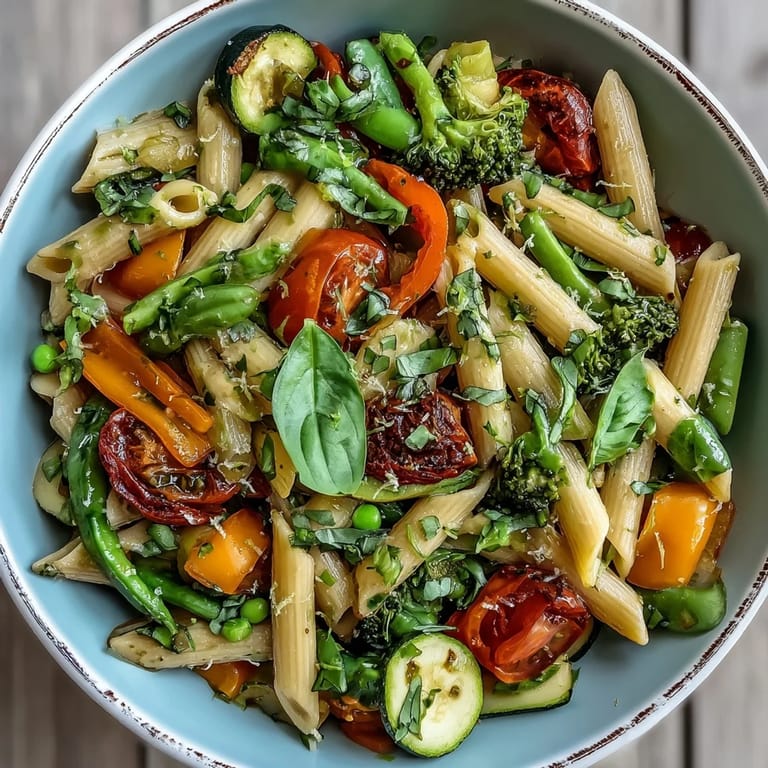 Enhance the dish with a topping of toasted pine nuts or vegan parmesan for added texture. It pairs exceptionally well with a crisp Sauvignon Blanc or sparkling water with a slice of lemon.