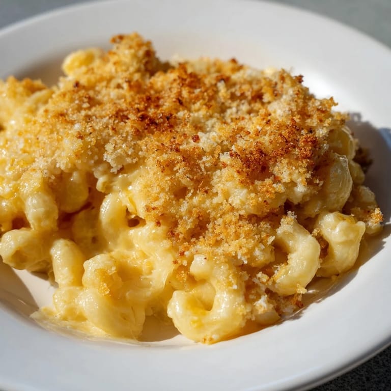 Save A creamy comforting classic featuring tender macaroni baked in a rich cheesy sauce with a golden crunchy topping. Perfect for family gatherings or weeknight indulgence.