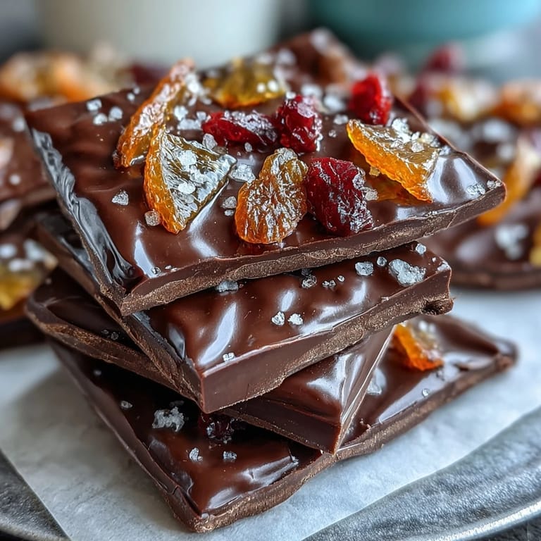 Save My friend texted me a photo of a chocolate bark she'd seen at a fancy chocolatier, and I remember thinking, why pay thirty dollars for something I could make in my kitchen on a Tuesday afternoon? The real magic wasn't the dark chocolate—it was the shock of bright, tangy candied orange peel breaking through all that bittersweet richness. I made my first batch almost by accident, melting chocolate while waiting for water to boil, and the candied peel just happened to be sitting on my counter. That happy accident became something I now make whenever I want to feel a little fancy without the fuss.