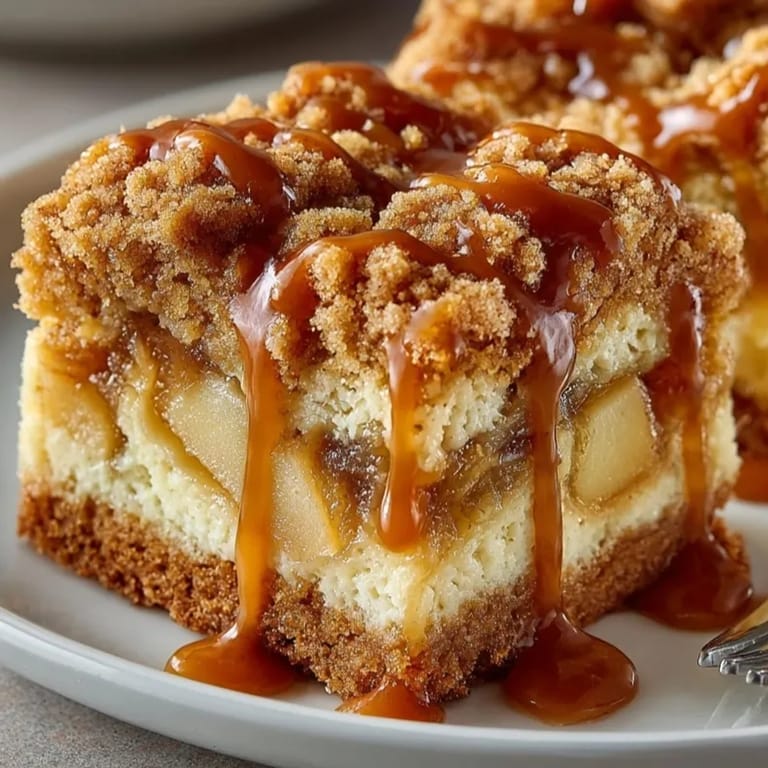 Experience a delightful blend of chewy blondie layers and tender chunks of apples, all swirled with luscious sweet caramel. Perfectly balanced with a hint of cinnamon and a touch of buttery richness, these bars capture the warmth and flavor of a classic fall dessert. Whether enjoyed warm or at room temperature, each bite delivers comforting flavors and irresistible texture, making them ideal for sharing or holiday gatherings. Serve with ice cream or a dusting of powdered sugar for extra indulgence.
