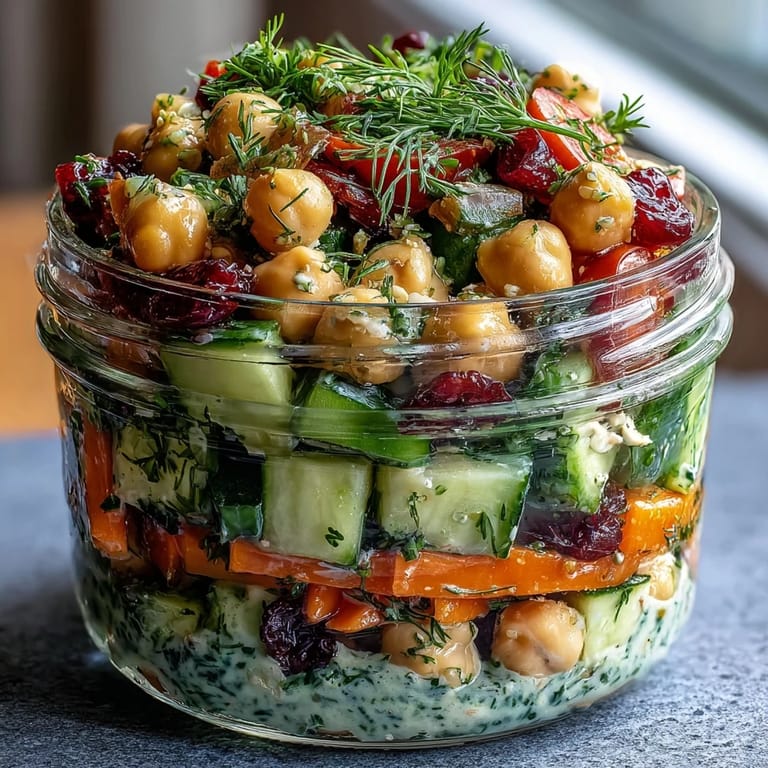 Save Last summer, I was standing in my kitchen at 6 AM, staring at a nearly empty fridge and thinking about the week ahead—too busy for complicated meals, too stubborn to eat sad desk lunches. That's when I started layering things into mason jars, not out of any trendy inspiration, but pure desperation for something that would still taste bright and alive three days later. This salad emerged from that quiet kitchen moment, and it's become the thing I actually look forward to eating.
