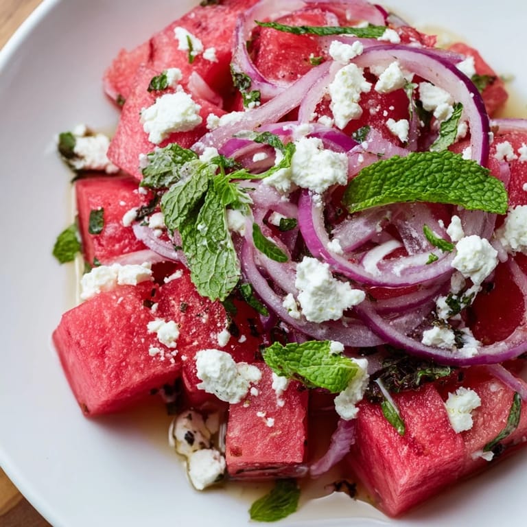 Save The first time I made this salad was during a heatwave when my apartment felt like a sauna and turning on the oven was unthinkable. I had half a watermelon sitting on the counter and a block of feta that needed using, so I threw them together in what I thought would be a desperate combination. The contrast of icy cold sweet watermelon against salty tangy feta was so startlingly perfect that I ended up eating half the bowl standing up in my kitchen, forgetting entirely about whatever else I had planned to make that night.